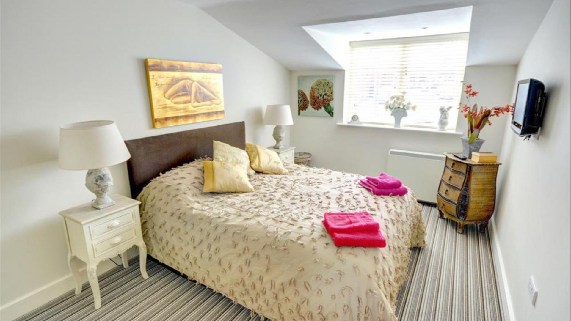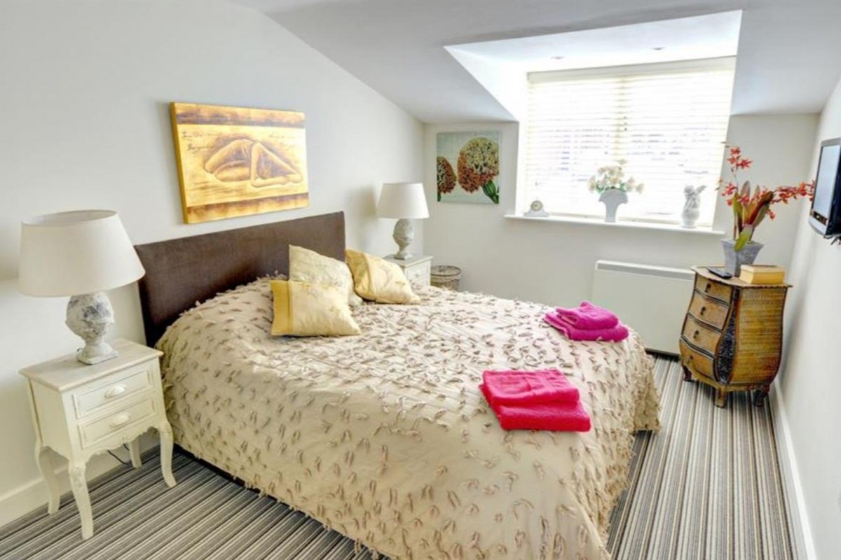 Bedroom 2 : Double bed, wardrobe, drawers & TV