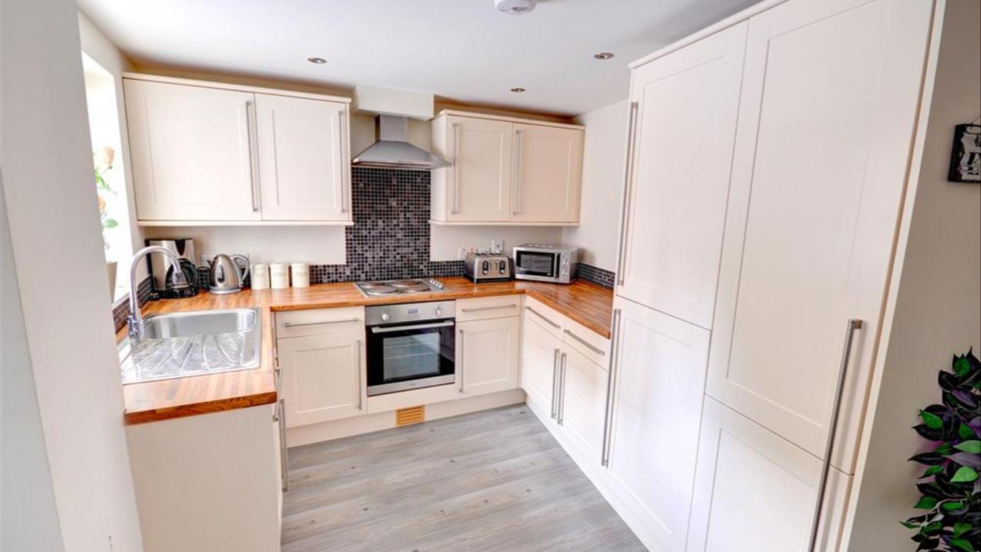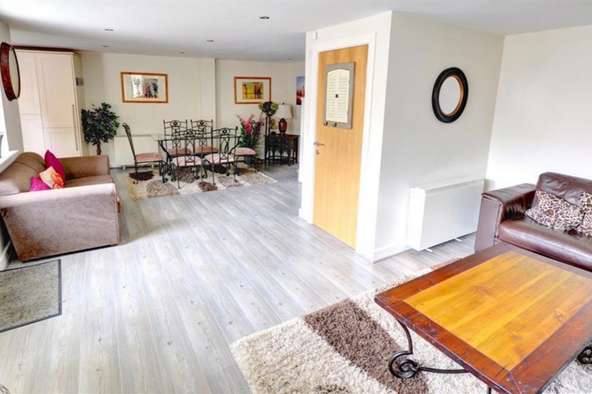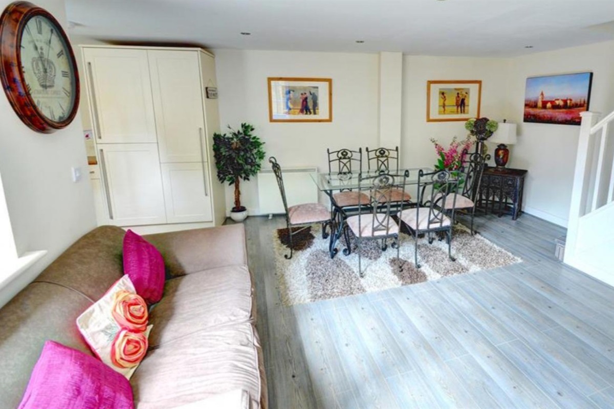 Lounge / Kitchen / Diner / Downstairs toilet : Double sofa bed (+2 guests), two sofas, TV, dining table & chairs, fridge/freezer, ceramic hob with oven, extractor, washing machine & microwave.