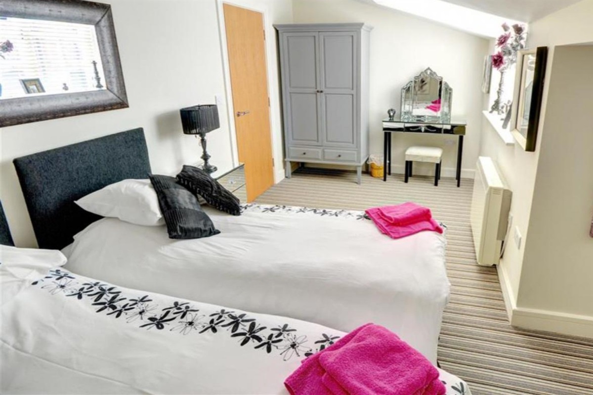 Bedroom 1 : Two twin beds which can be made into a double upon request, a small child bed ( 8 years and under) can be made upon request, wardrobe, dressing table & TV