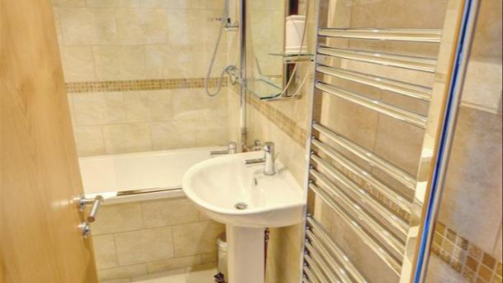 Family Bathroom : Bath with shower head, toilet & washbasin