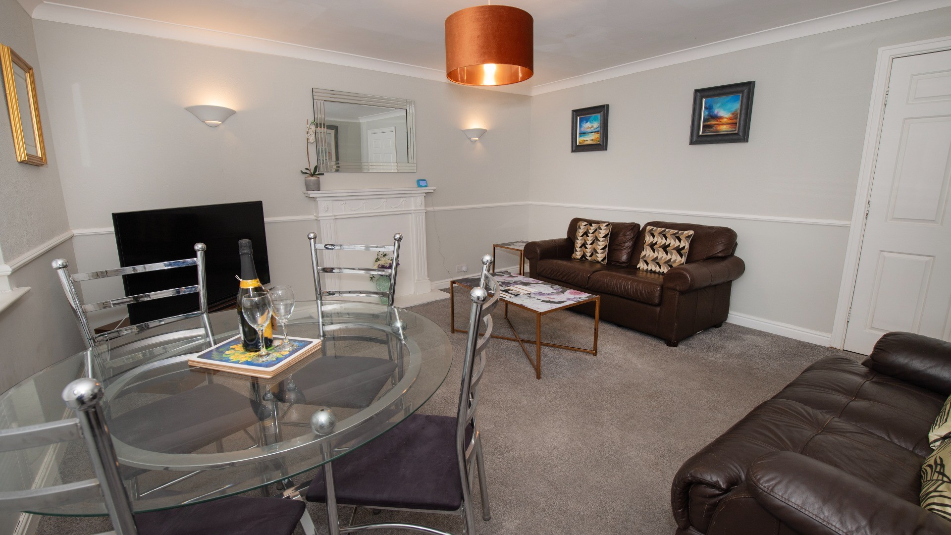 It comprises of two double bedrooms one with en suite toilet & shower, a family bathroom and spacious lounge with dining area and fully equipped kitchen.