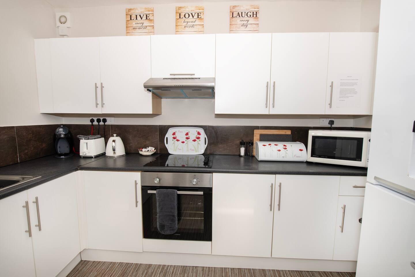 We provide bedding, towels, shampoo, shower wash, coffee pods, loo roll & washing up liquid for your stay.