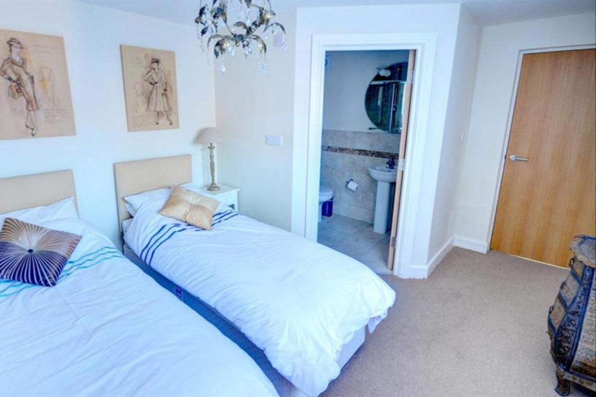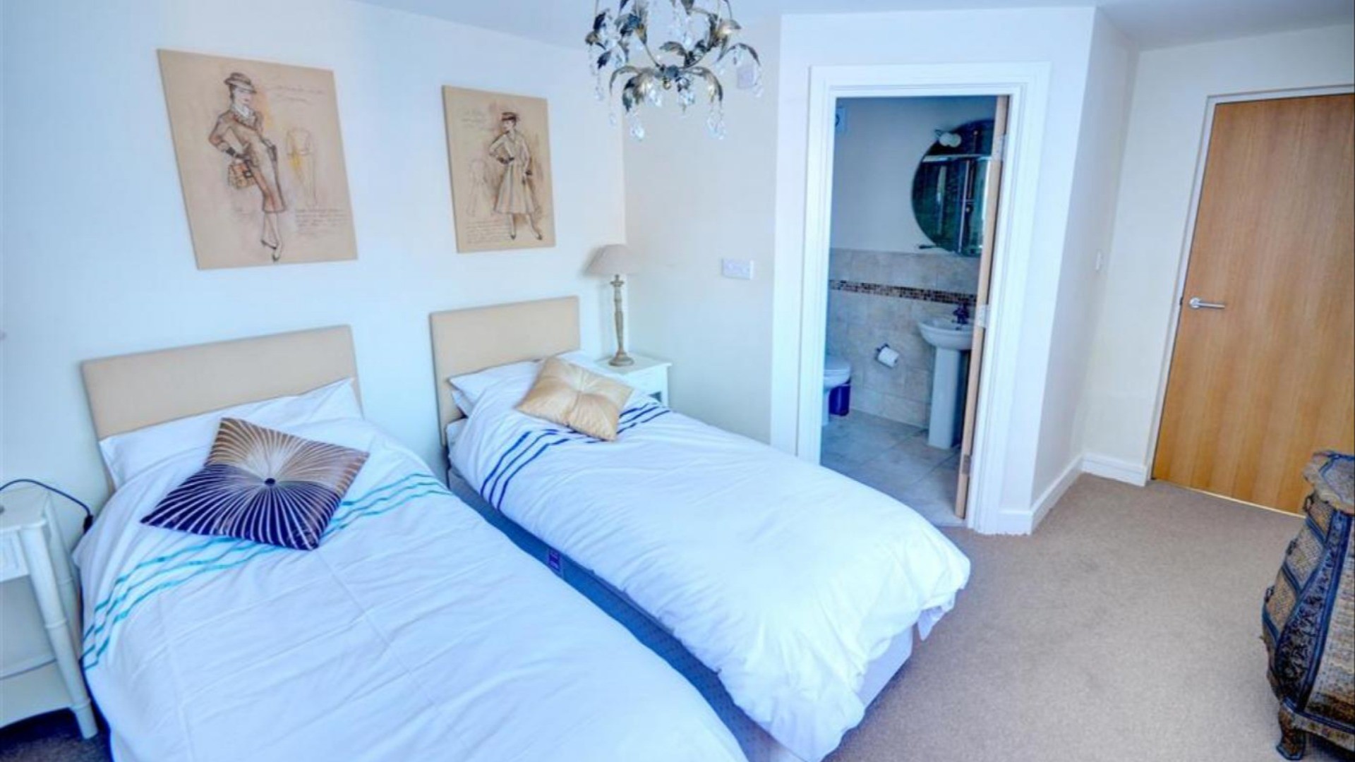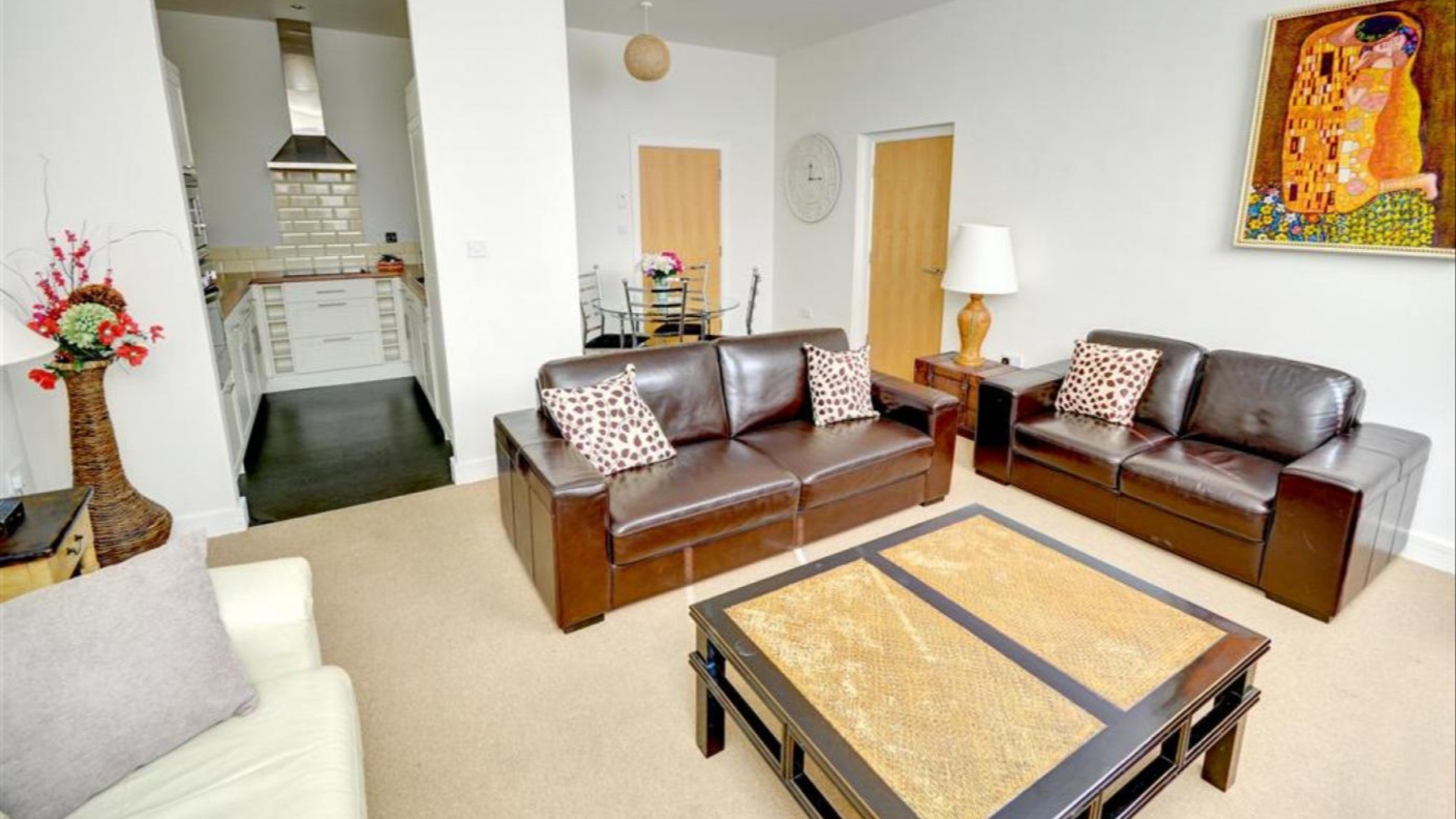 The apartment has an open plan kitchen and lounge which is light and airy. It is made up of two double bedrooms, one of which has an en suite and then there is also a family bathroom.